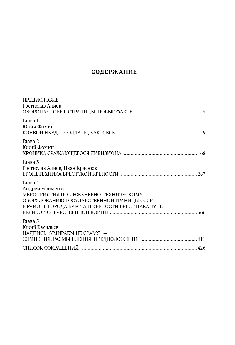 Главная тема сборника «Броня и люди Брестской крепости»: — ее оборона в июне 1941 года. В центре внимания авторского коллектива (в его составе— как те, кто пришел в тему Обороны десятилетия назад, так и совсем молодые исследователи) — малоизвестные страницы обороны, зачастую впервые открываемые для любителей военной истории. Действия бронетехники Красной Армии при обороне Крепости, история боя 132 отдельного батальона конвойных войск и 98 дивизиона ПТО, рассказ об укреплениях приграничной полосы СССР в полосе Брестского погранотряда. Один из очерков — это попытка нового прочтения одной из самых известных и волнующих находок, обнаруженных в Крепости в послевоенные годы — надписи «Умираем не срамя».