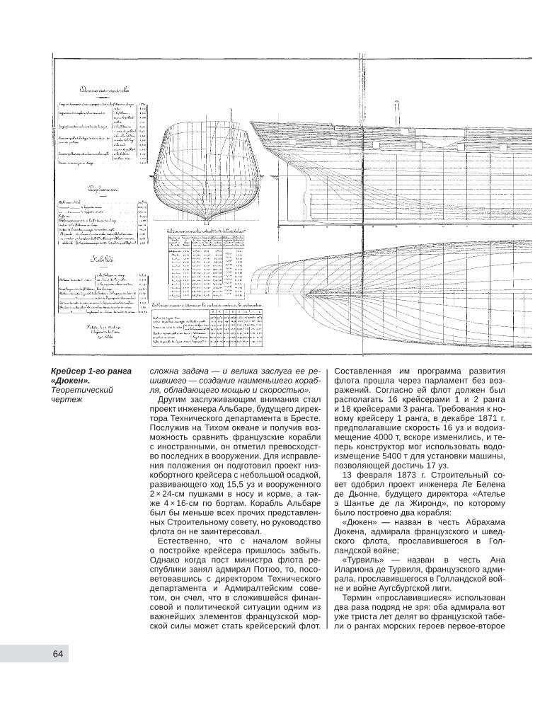 Ведущий историк французского флота второй половины XIX – начала XX века детально рассматривает конструктивные особенности, тактико-технические характеристики, артиллерийское вооружение и службу крейсеров, анализируя влияние технологических достижений и военно-морской доктрины на их проектирование и строительство. Особое внимание автор уделяет первому бронепалубнику французского флота, а также роли инженеров и адмиралов, внесших значительный вклад в развитие флота Третьей республики.